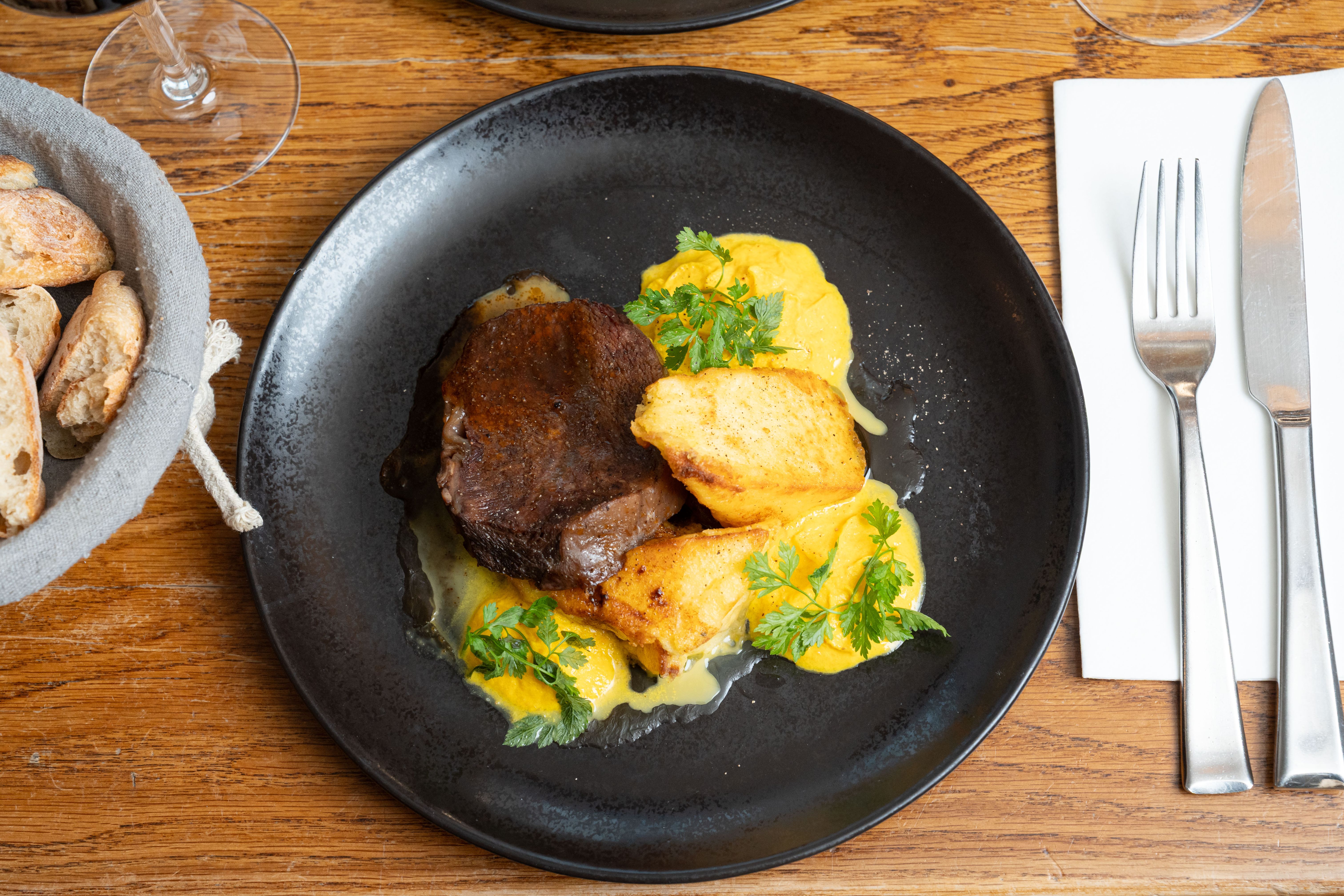 Rognon de veau entier, jus de viande, pommes purée / Whole veal kidney, meat juice, mashed potatoes